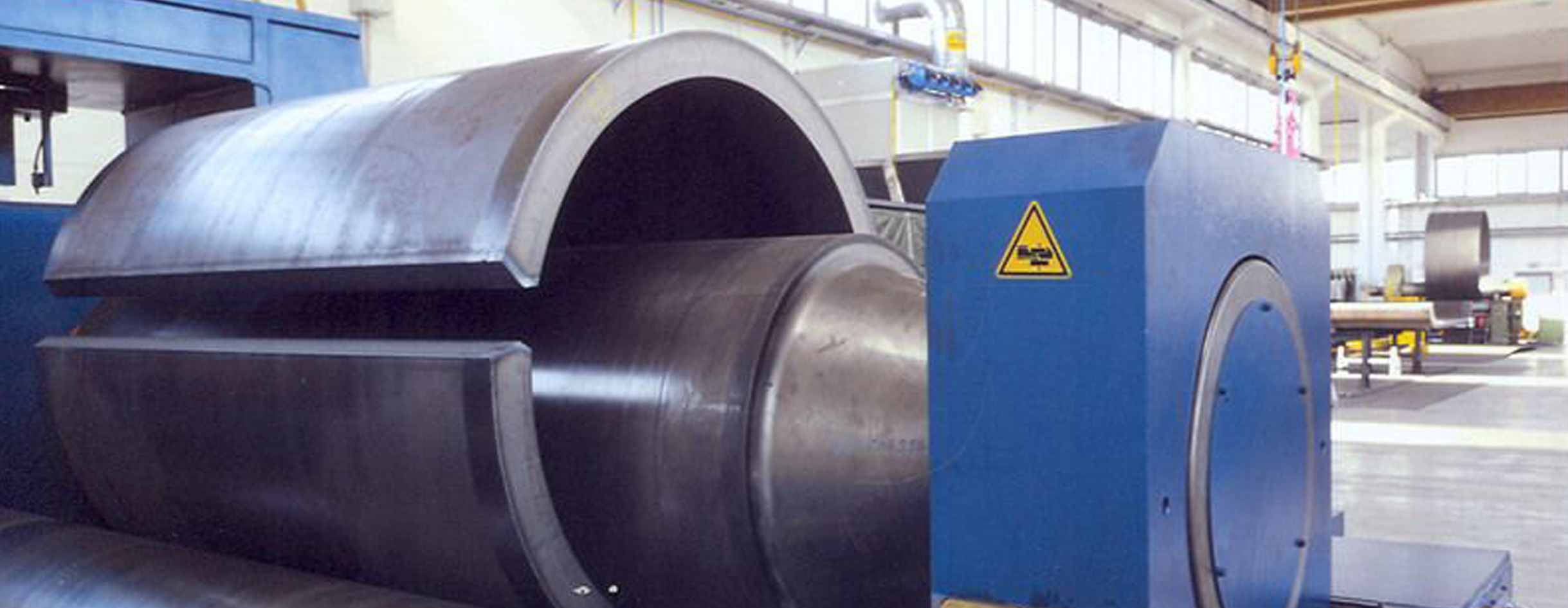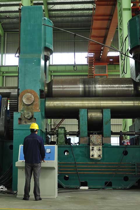 水平下調式三輥卷板機可用于將一定厚度的金屬板材卷制成筒狀、弧形或一定錐度的工件。該設備可用于大型厚壁承壓設備、化工壓力容器等產品的筒體卷制和焊后校圓,